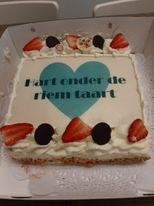 Wij hebben onze klanten verrast met een hart-onder-de-riem-taart. Veel waardering voor de veerkracht van ondernemers!
